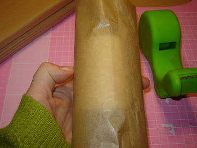 then i pull the paper as tight as I can (important) and use tape to secure it